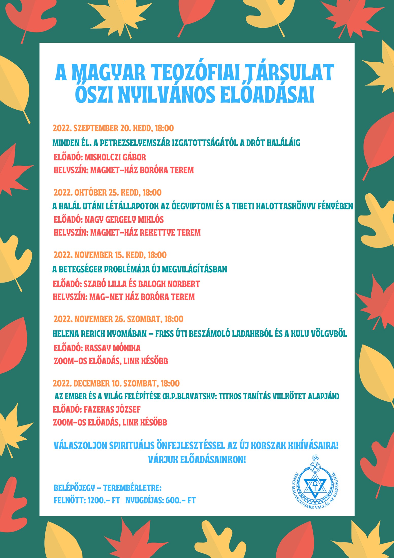 Tájékoztatjuk az érdeklődőket, hogy a május 23-ra meghirdetett "A tattvák és a második halál értelmezése" c. zoom-os előadást 2023.június 20-án, kedden 18:00-kor tartjuk meg szintén zoom-on. Meghívót és linket időben közlünk.
