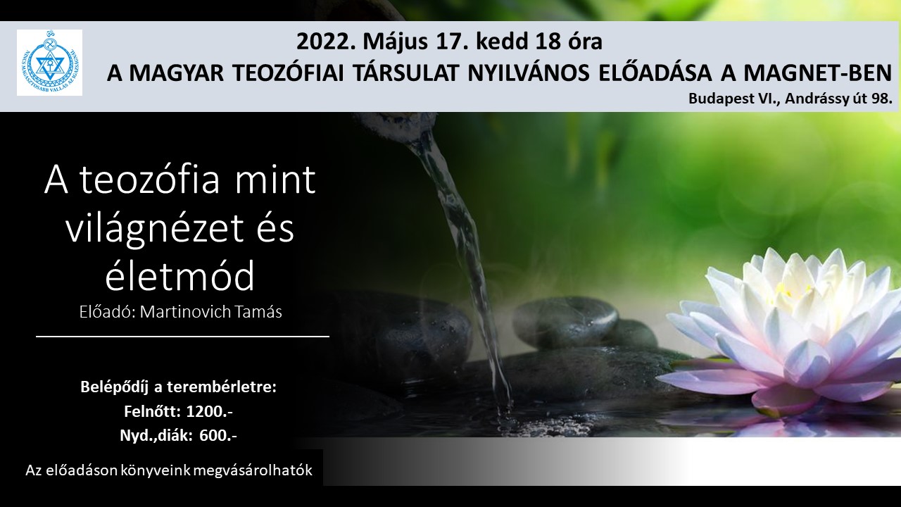 - A részvétel ingyenes. Felajánlást köszönettel elfogadunk a Magyar Teozófiai Társulat 11706016 20466347 számlaszámára.