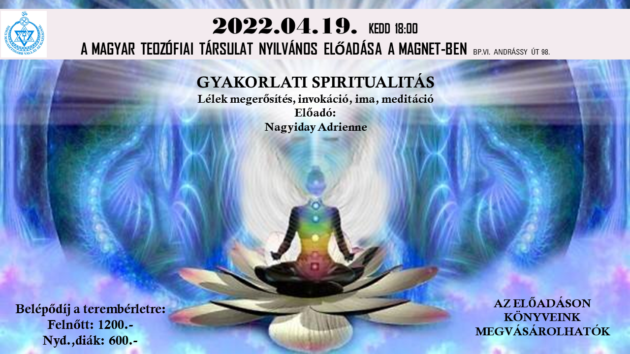 • A részvétel ingyenes. Felajánlást köszönettel elfogadunk a Magyar Teozófiai Társulat 11706016 20466347 számlaszámára.